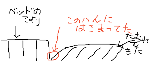 そっと覗くとベッドの手すりのところにあそこが挟まってた。